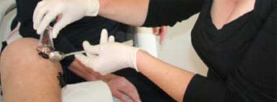Es ist so weit. Margret Engels macht es sich auf der Liege in einem Behandlungsraum bequem und entblößt ihr rechtes Knie. Monika Czech piekt eine Nadel in die Haut auf der Kniescheibe. Ein Blutstropfen quillt hervor. Dann angelt die Heilpraktikerin mit einem Latte-Macchiato-Löffel in einem großen Gurkenglas und fischt einen dunklen, glänzenden Blutegel heraus. Das wurmartige Tier windet sich, bis es mit seinem Beißwerkzeug an die blutige Stelle am Knie andockt. Mit seinen vielen Zähnen sägt sich der Egel in die Haut ein und hält sich mit einem Saugnapf, den er am Hinterteil trägt, fest. Dann beginnt der dunkelgrüne Körper zu pulsieren. "Der hat es aber eilig", sagt Margret Engels und schmunzelt. Einen Schmerz spüre sie aber nicht. Im Gegenteil. "Ich merke jetzt schon, wie der Druck im Knie nachlässt", sagt Margret Engels.